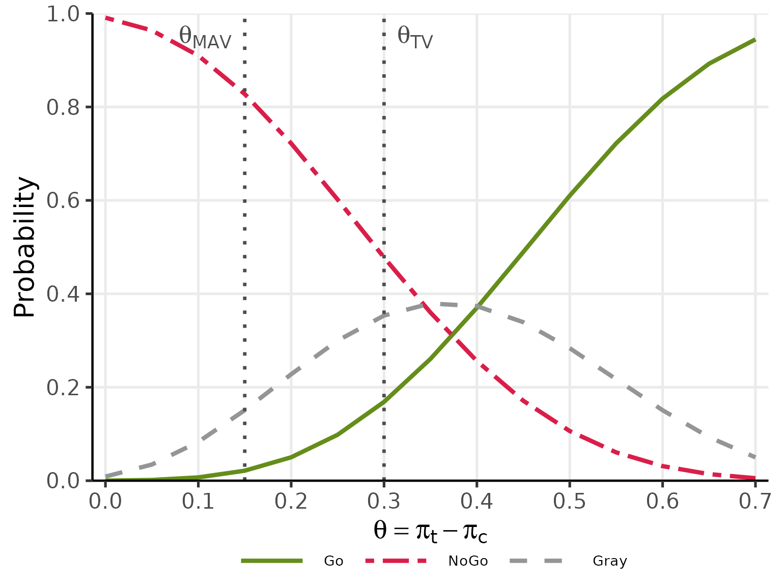#> Go/NoGo/Gray Decision Probabilities (Single Binary Endpoint)