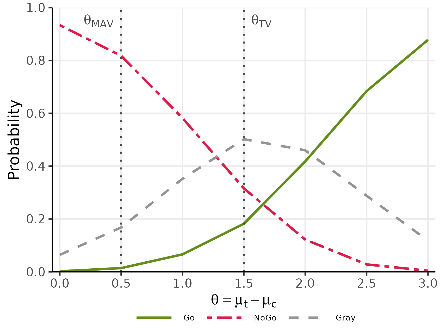#> Go/NoGo/Gray Decision Probabilities (Single Continuous Endpoint)